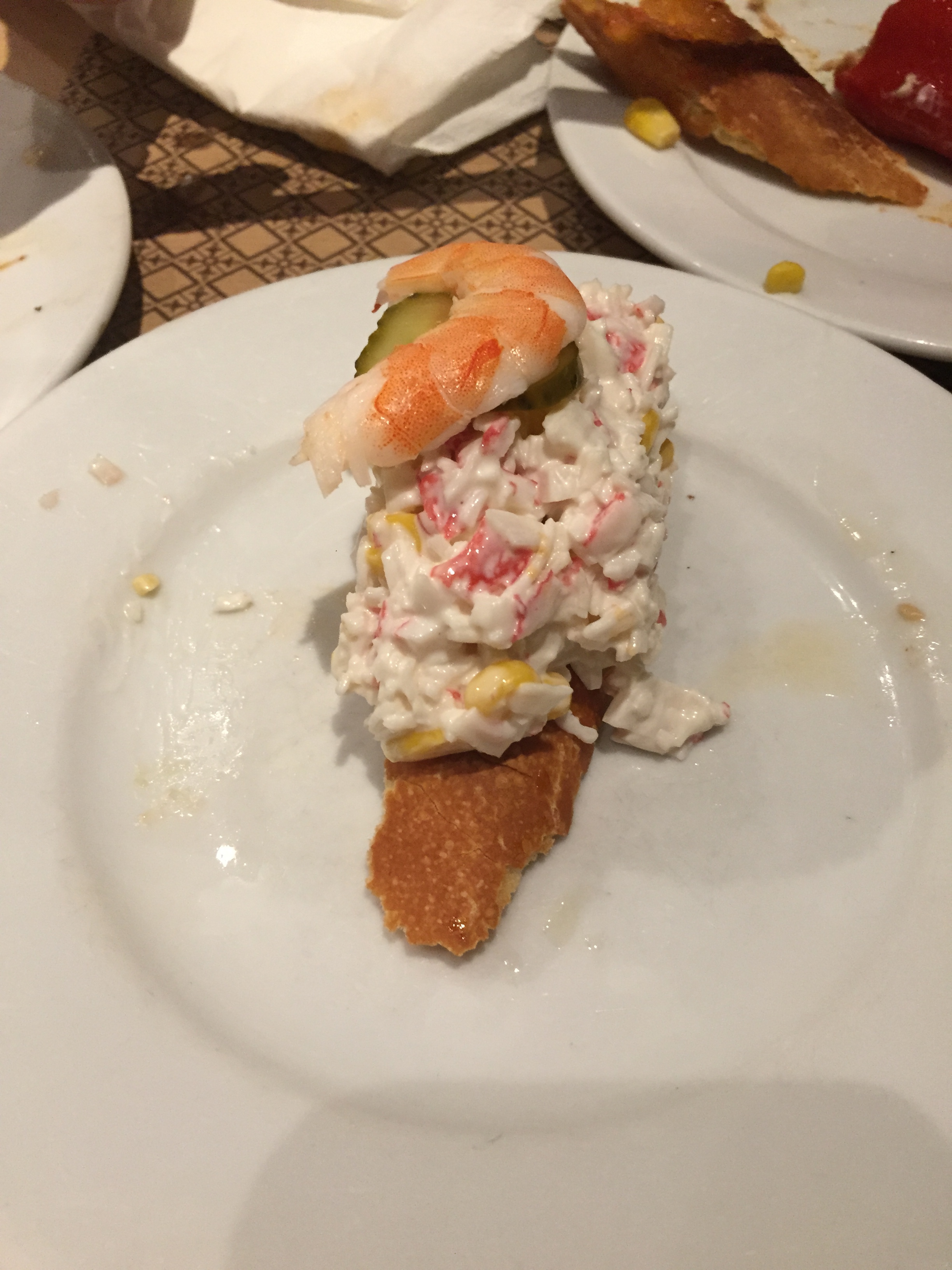 Bir gece önceki deneyimden sonra bu sefer barda oturmanın işin raconu olduğunu fark ettik. Tam tamına 1 saat sıra bekledikten sonra (sanırım 10-15 kişi alıyor) güzelce bara kurulduk. Eğer lokal biri değilseniz yani sular seller gibi İspanyolca konuşmuyorsanız maalesef ne istediğinizi tarif etmek biraz zor. Çünkü gözünüzün önünde hazırlıyorlar her şeyi. Biz telefonları çantalara koyup yemeklerimize konsantre olduğumuz için tattığım muhteşem yemekleri fotoğraflarla destekleyemiyorum. Biz kabaca tapas uzmanımıza neleri yemeyeceğimizi söyledik o da bize kendi önerilerini getirdi. Başlangıç olarak üzerine sarımsaklı domates sos sürülmüş ekmekler geldi, ikinci olarak yanında kızarmış küçük ekmeklerle marineli tuna tartar aldık. Sanırım ismi ‘tuna tartare with parsley and sesame seeds’. Bence çok lezzetliydi çok beğendim normalde de balık tartar sevdiğim için keyifli oldu. Sonra önümüze Sülünez (razor clams) isimli ince uzun midyelerden geldi. Bol tereyağında otlarla sotelenmiş midyeler kabukları ile geldi. İçindeki etler oldukça güzel pişmişti. Bu tapas restoranlarının en güzel özelliği sizin daha ilk yemeğiniz bitmeden oldukça uygun bir zamanda diğer yemeğinizin de geliyor olması. Son olarak da bugüne kadar yediğim en lezzetli jumbo karides geldi. Sanırım çeşitli baharatla ve krema ile tatlandırılmıştı. Burada yemeklerimize meşhur köpüklü şarapları Cava eşlik etti.