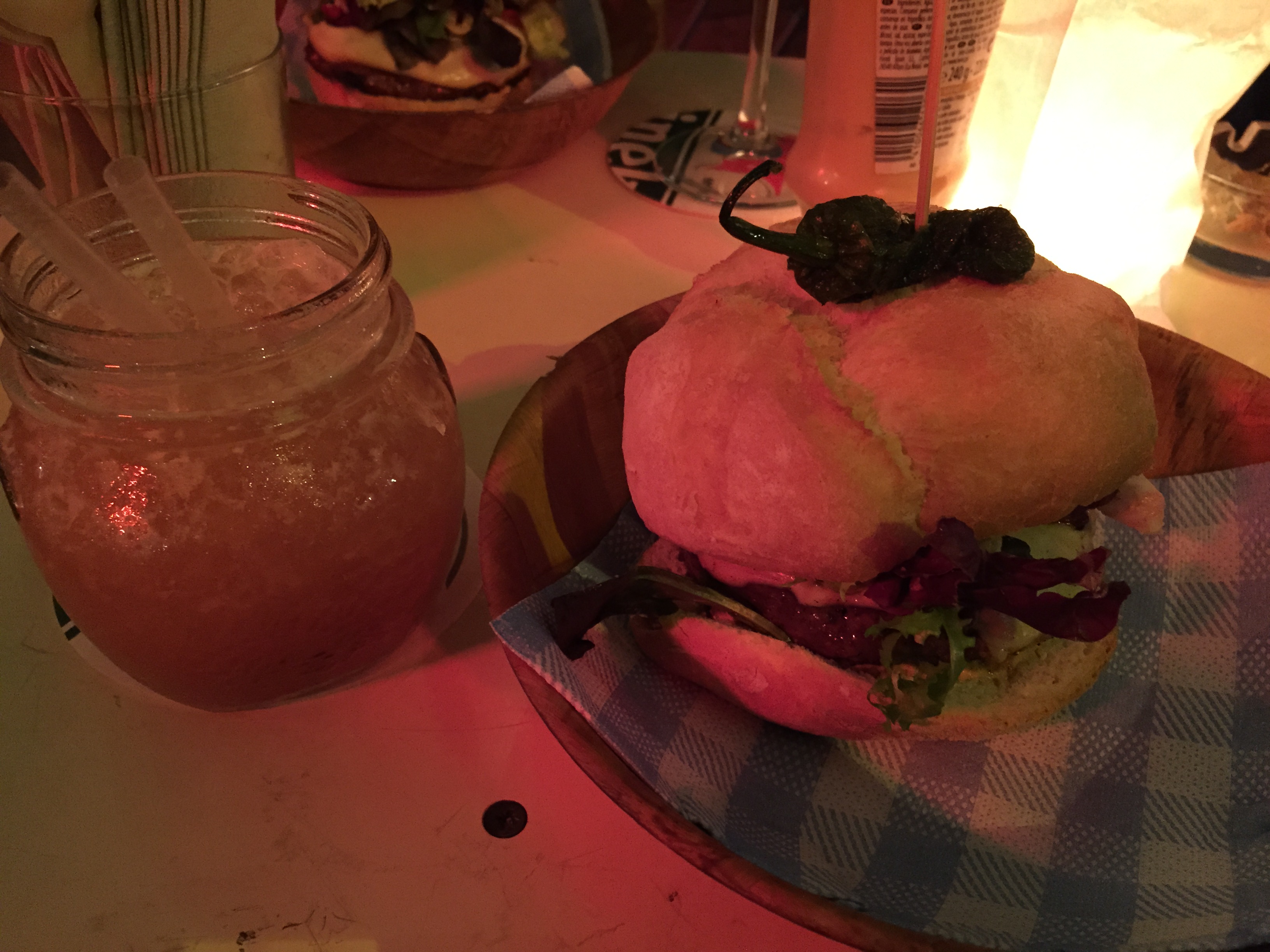 Peki tapas ve paella dışında bize ne önerirsin derseniz Barcelonata bölgesinde adeta Kalifornia’dan fırlamış dekorasyonu ve çılgın burger isimleri ile MakaMaka Beach Burger’i öneririm. Ekşi mayalı burger ekmeğinden yapılmış devasa burger köfteleri ile çeşitli burgerler gerecekten çok lezzetliydi. Ben burger olarak Hot Mama’yı tercih ettim yanına da peanut aromalı votkalı bir kokteyl aldım. Konsept olarak Barcelonatta’nın ruhuna uygun bir mekandı… Buradaki hesabımız 32,60 € tuttu.