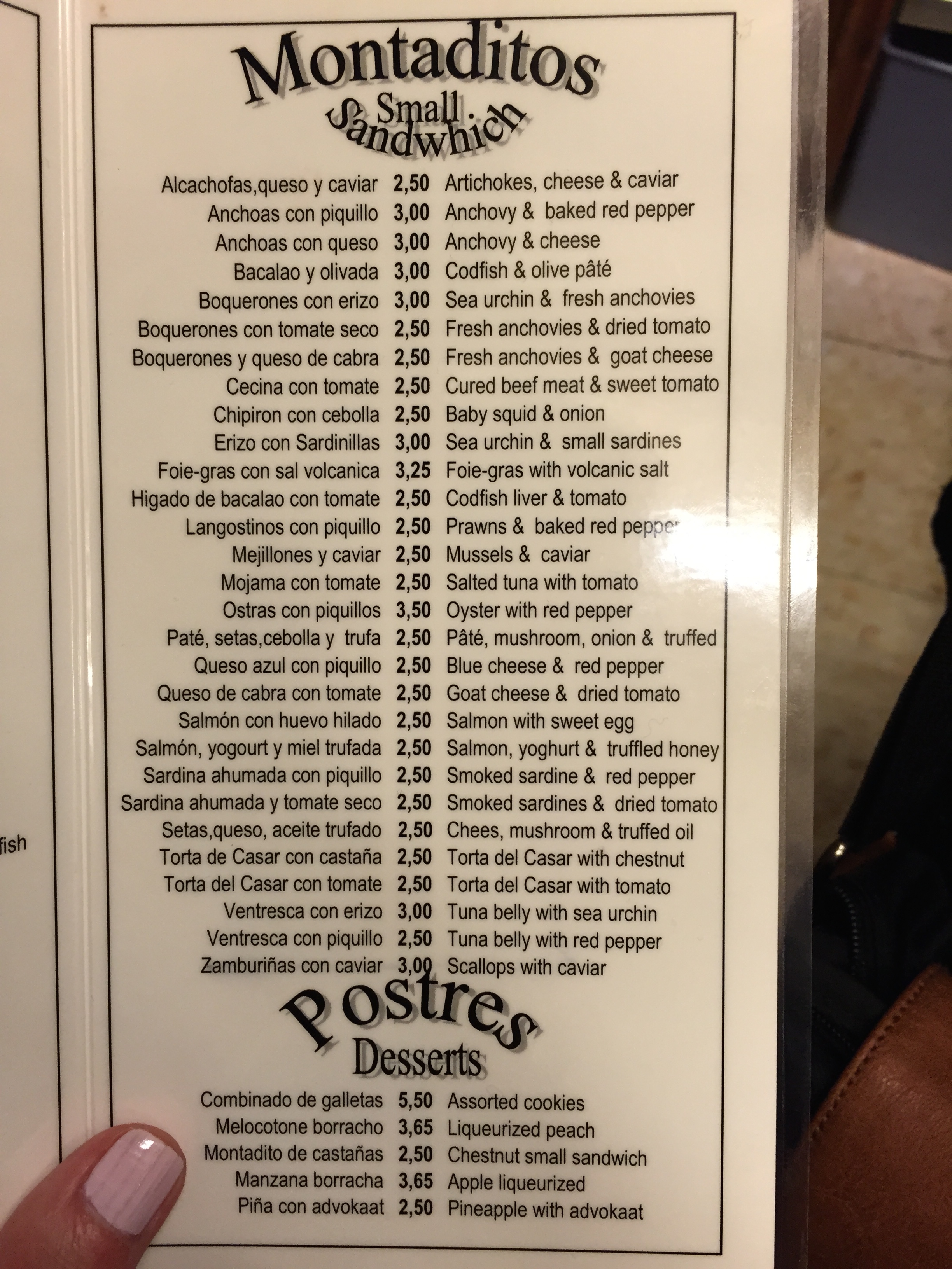 Quimet Quimet: En güzelini en sona bıraktım. Küçücük, herkesin ayakta takıldığı, siparişlerin İspanyolca bağırarak verildiği tam bir Barselona tapasçısı. Sadece fotoğraflarıma ve menünün içeriğine bakın… Arkadaşım ile birlikte buradaki bütün tapasları yedik. Hepsi efsaneydi, kestane ile krem peynir; havyar ve enginar karışımı, ilk ısırdığınızda tatlı olup sonra boğazınızda hafif bir acılık bırakan füme bal ve füme somon… Bu hayatta olmaz dediğiniz farklı lezzetler inanılmaz bir uyumla ekmeğin üzerine süzülüyordu. Gerçekten buraya çok aç gidin ve hepsini denemeye çalışın. Gecenin sonunda tapas bardaki kadının gözlerini aça aça “Do you want more” demesi bence benim cümlemin noktası olsun diyerek sizi muhteşem fotoğraflarla baş başa bırakıyorum. Fiyatları da oldukça uygundu; iki kişi bu ziyafet için 33 € ödedik.