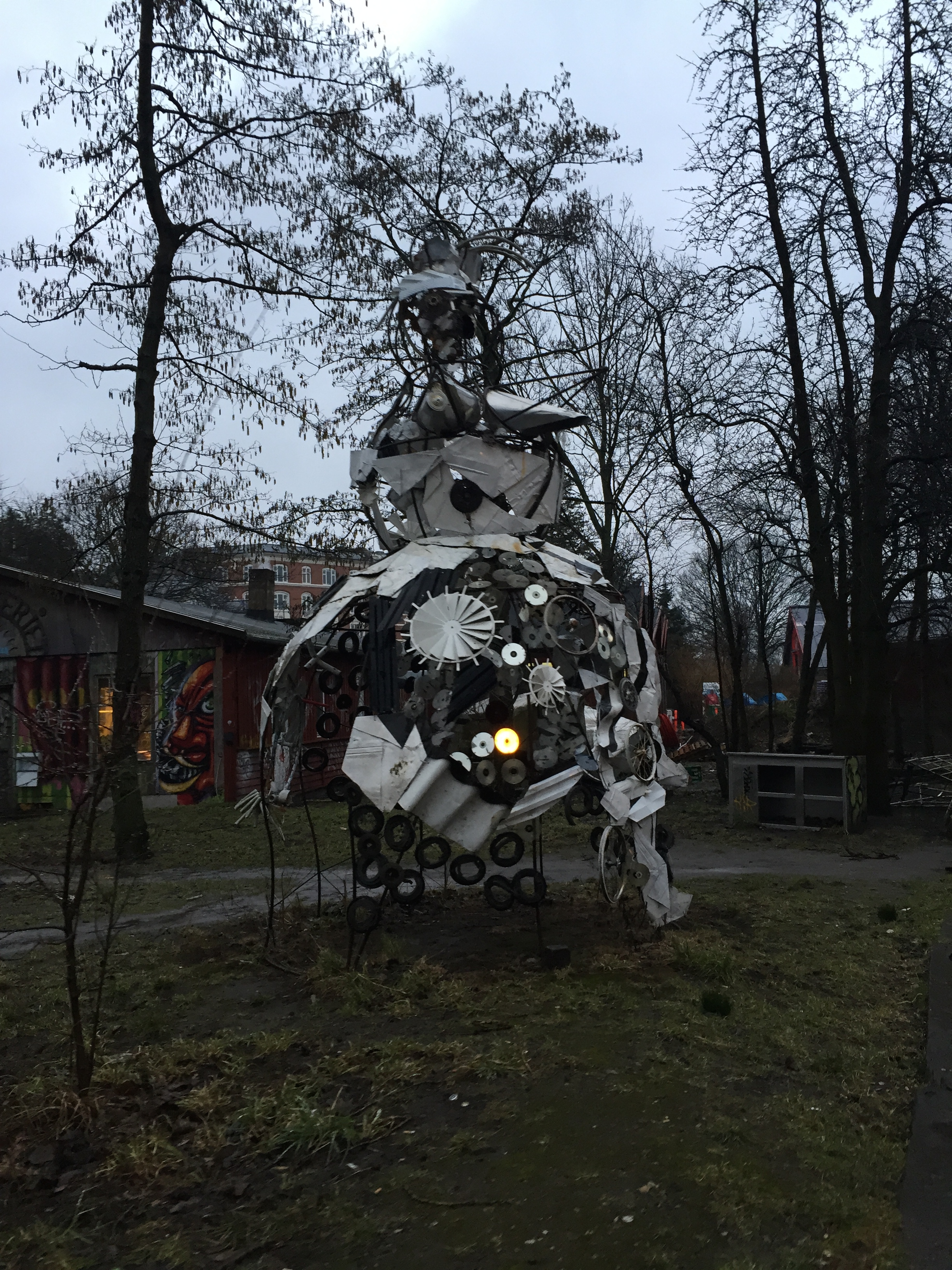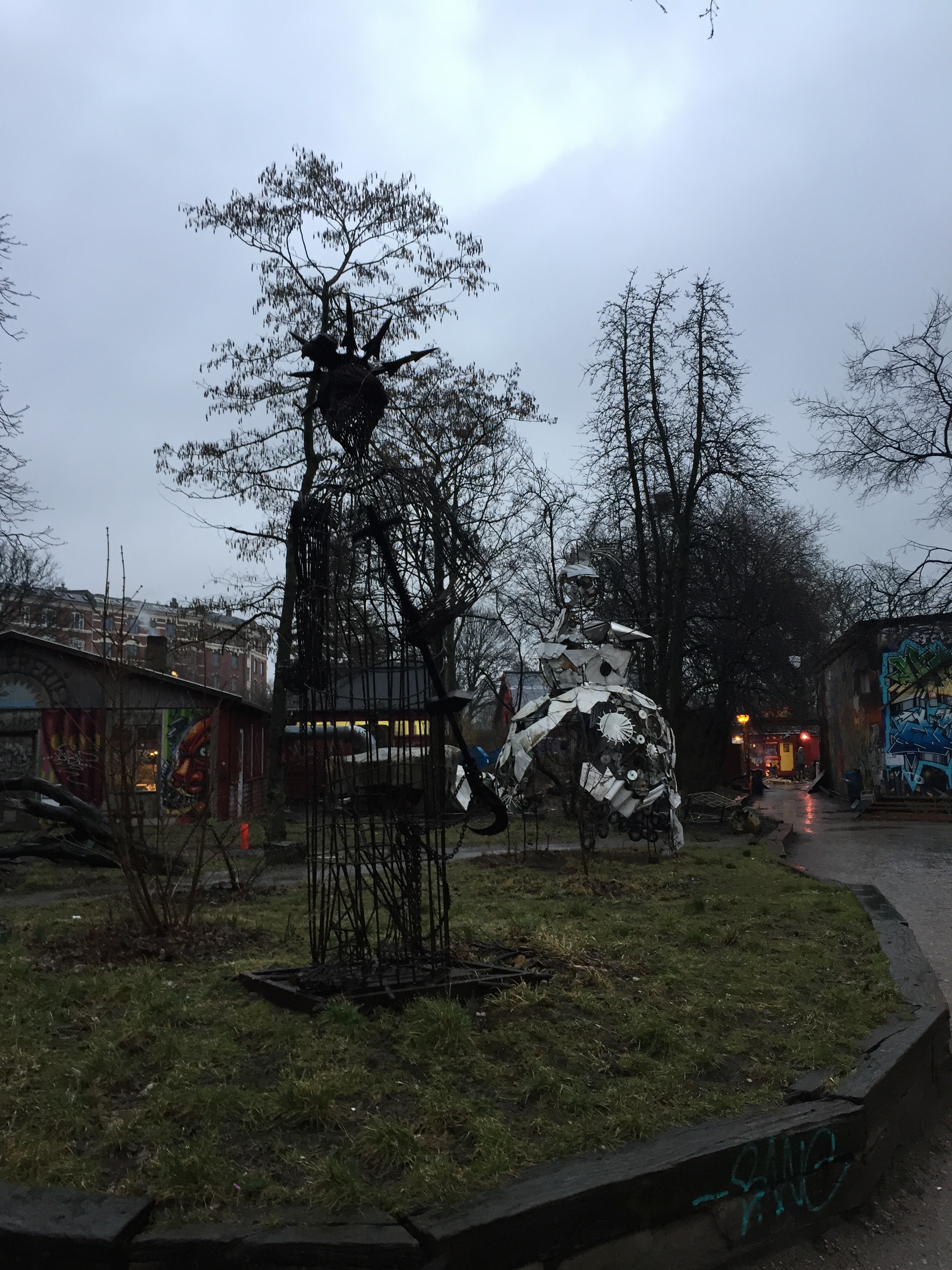 Biz buraları hızlıca dolaşıp günün sonuna doğru soluğu Christiania isimli hippi bölgesinde aldık, sabahın köründe kalkmanın üstüne yol yorgunluğu eklenince bulmak biraz zor oldu. Kapısından girerken ne kadar bohem ve tarz olduğunu anlıyorsunuz. Grili, heykelli, gizemli bir yer. Fotoğraf çekmek yasak dediler biz de söz dinledik. Burası devlet otoritesini reddeden, her anlamda serbest bir bölge ve kendilerine ait bayrakları ile baya baya dışarıya kapalı bir yaşamları var.