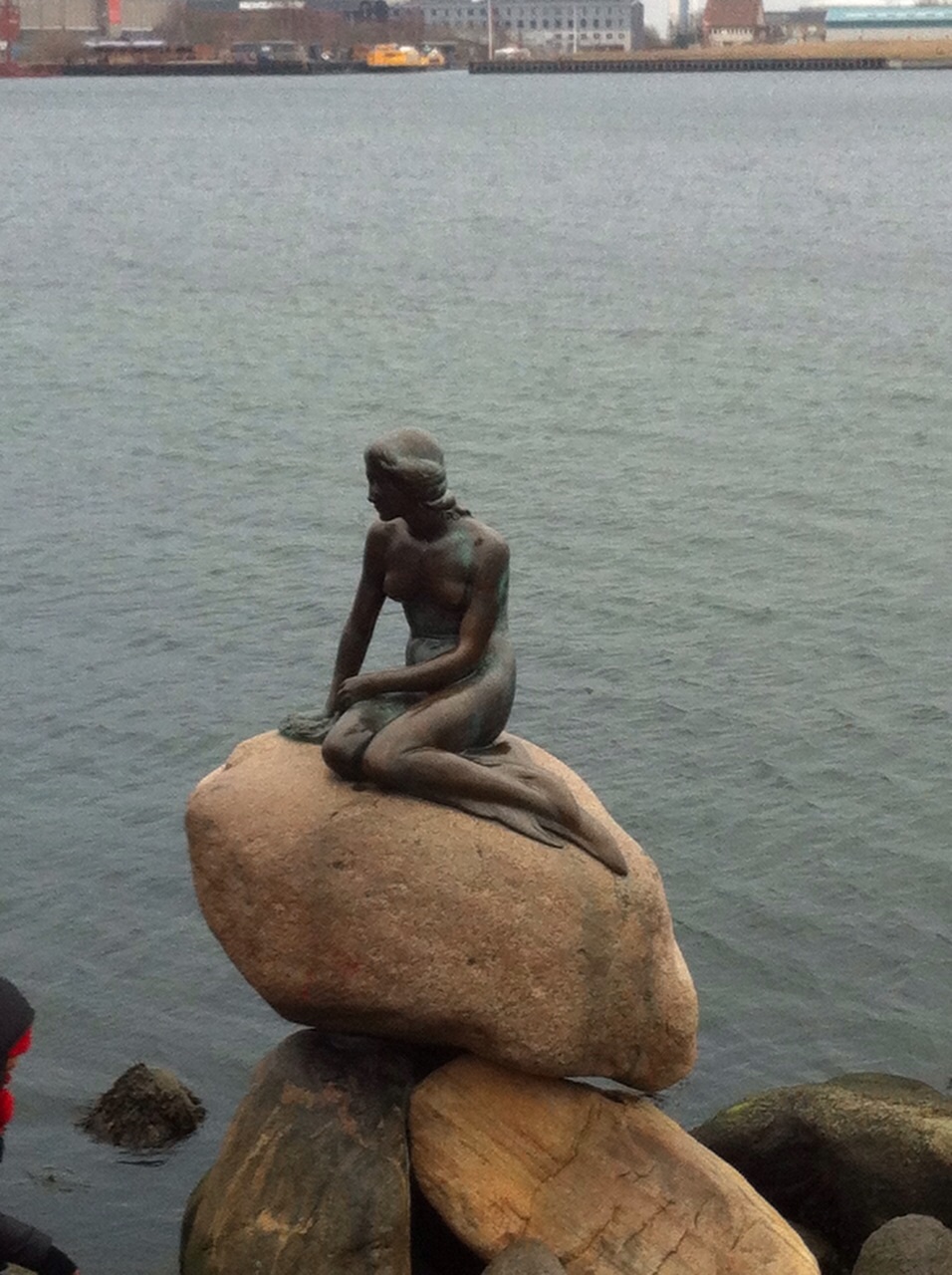 Yolda karnımız acıkınca bir süpermarkete girip ıvır zıvır atıştırmalıklar ve lokal biralar aldık. Denize karşı mis gibi bir keyif molası verdikten sonra Langelinie Limanı’nda yer alan Küçük Deniz Kızı heykeli ile buluştuk. Oldukça hüzünlü bir hikayesi var kendisinin o nedenle ben durup uzun uzun kendisini izledim. (Gerçekten küçücük bu arada.)